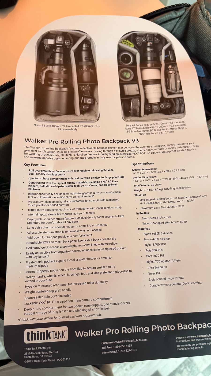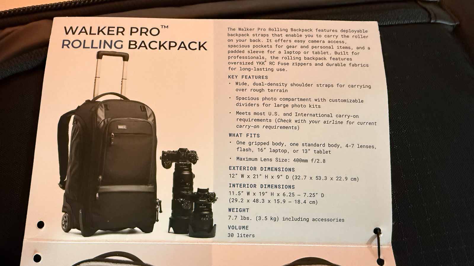 den Think Tank Photo Walker Pro Rolling Backpack.
