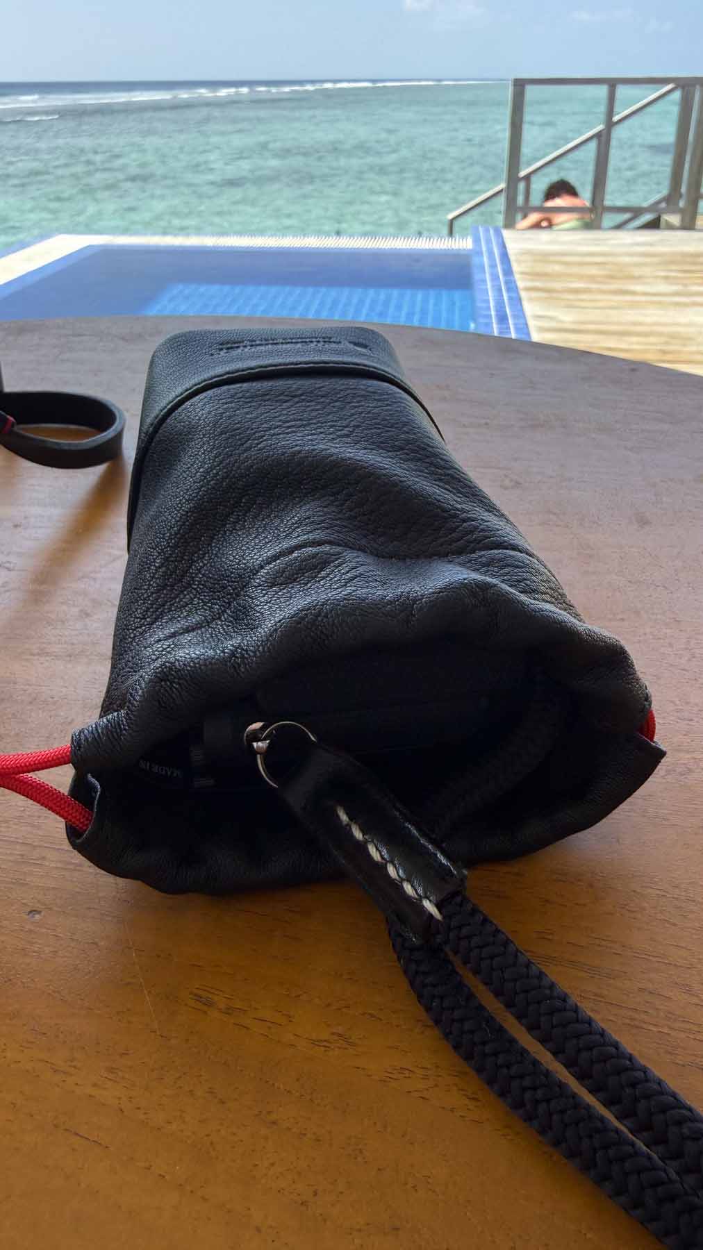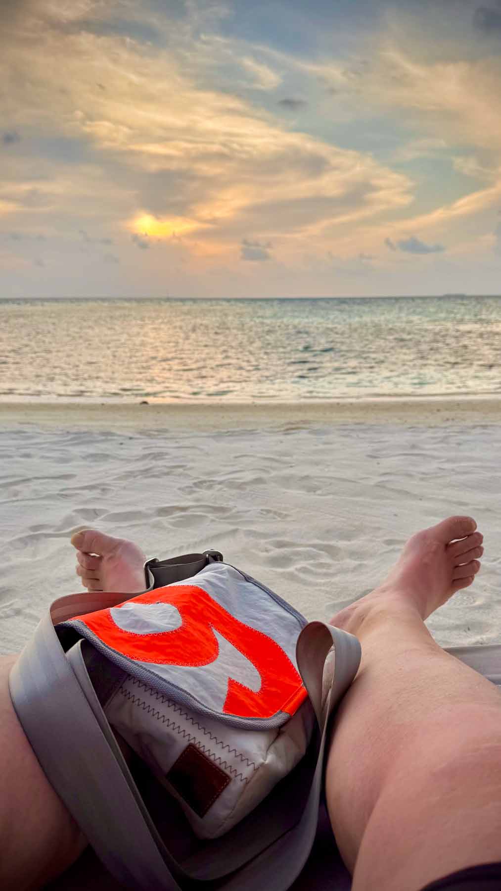 Diese Kombination ist ein echter Alltagsfavorit: nachhaltig, stylisch und funktional. Die Tasche ist ein Leichtgewicht (unter 200 g!) und die Lederbeutel sorgen für Ordnung und Schutz. Besonders auf Reisen – wie hier auf den Malediven – war das Set perfekt: unauffällig, leicht zu tragen und extrem angenehm in der Nutzung. 😎