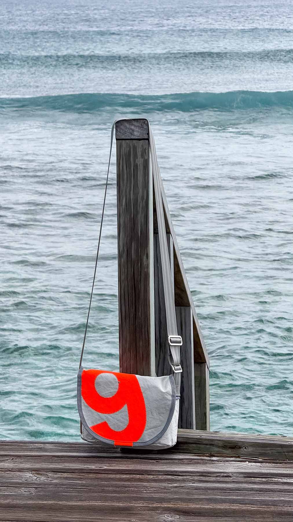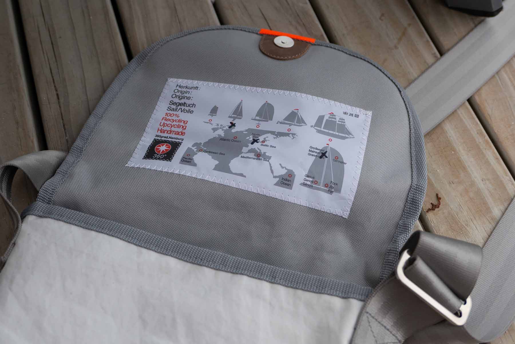 Die 360° Hamburg Taschen werden aus echtem recyceltem Segeltuch gefertigt – jedes Stück ist ein Unikat! Meine Tasche stammt laut Etikett aus einem Großsegel der Ostsee und wurde in einer deutschen Manufaktur verarbeitet. Besonders schön: Jede Tasche trägt ein Label mit Herkunft und Bootstyp des verwendeten Segels. ⚓