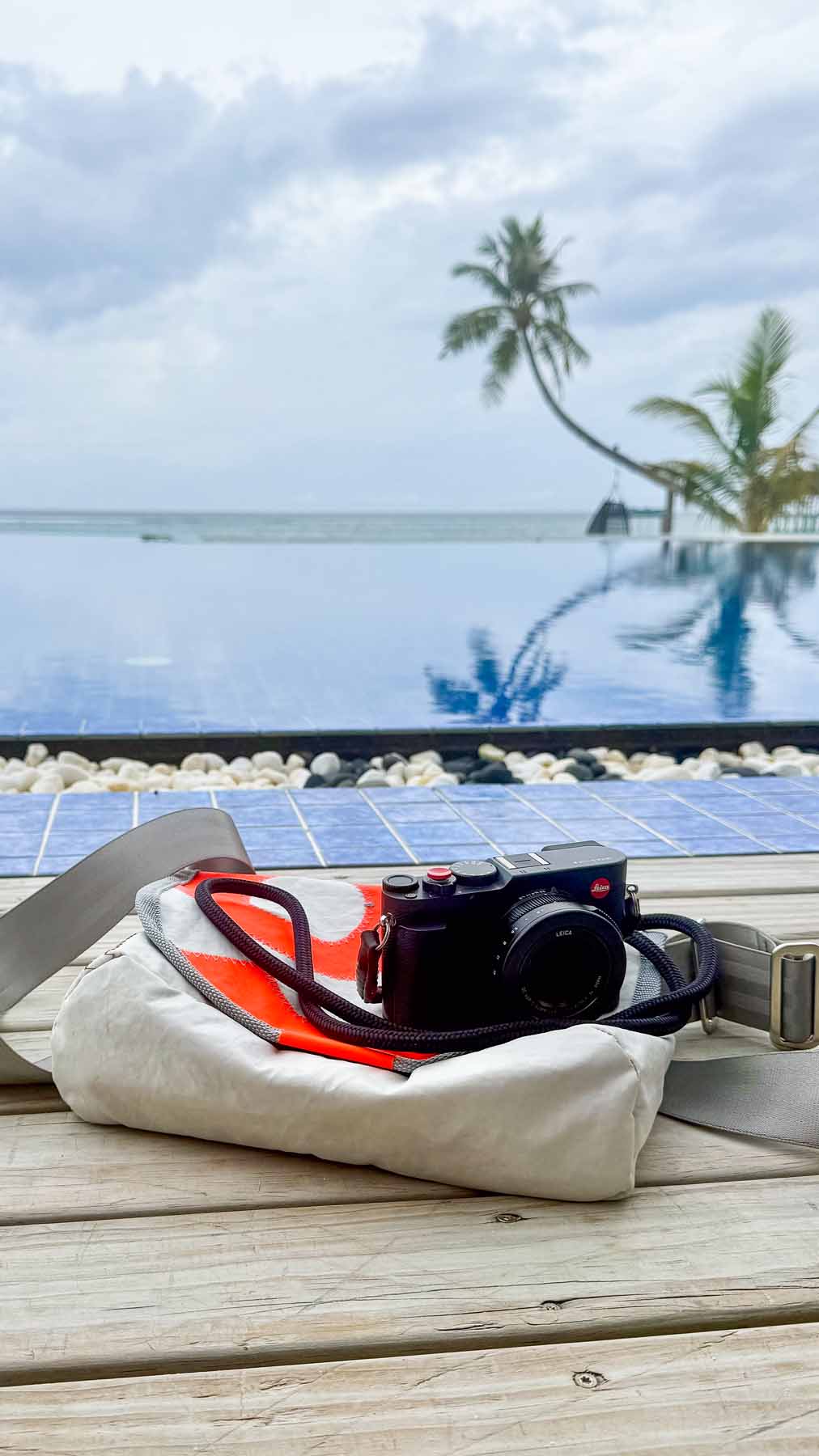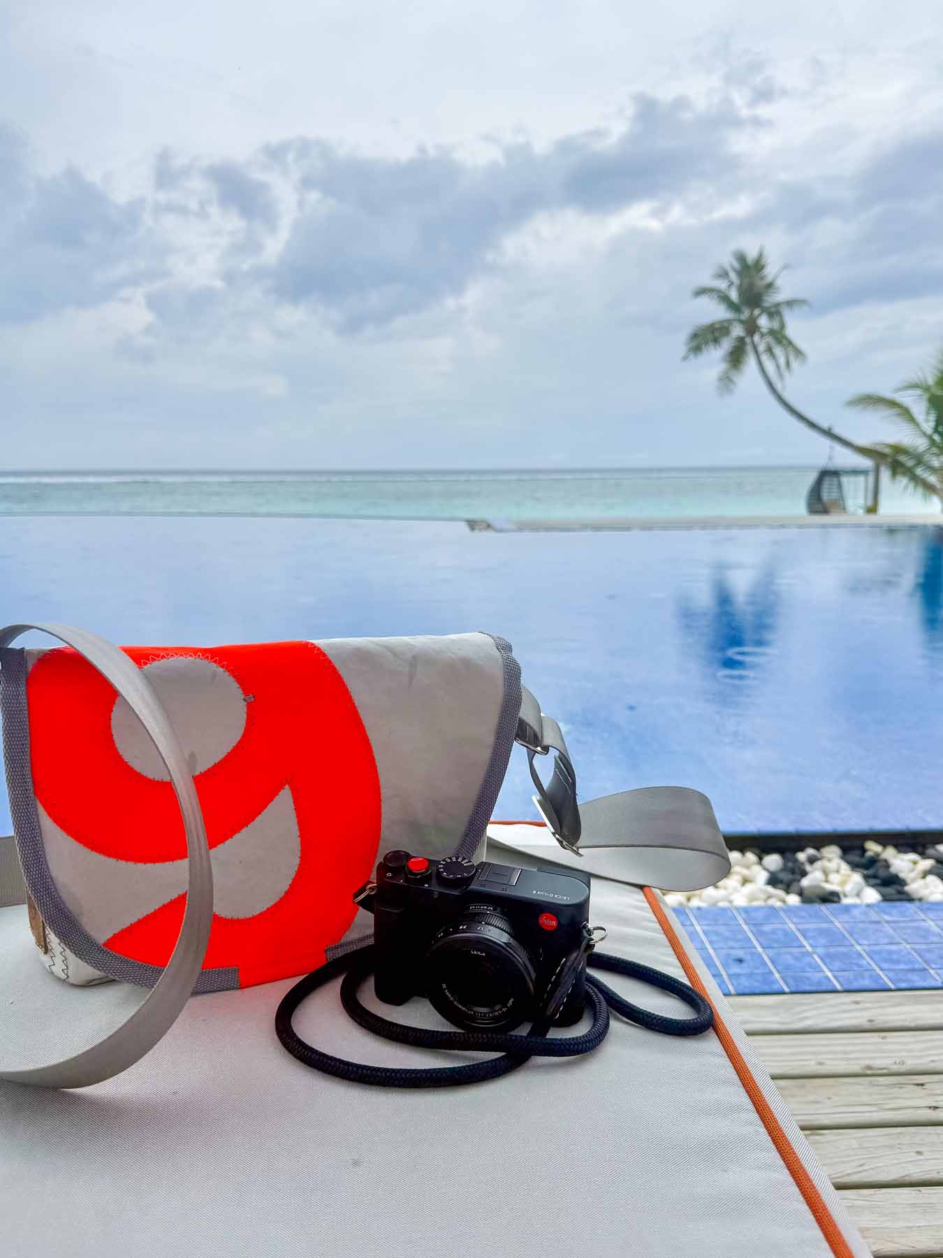 Die Tasche ist extrem leicht, robust und angenehm schlicht – perfekt für Reisen oder den Alltag. Ich nutze sie aktuell als kleine Kamera- und Alltagstasche auf den Malediven. Sie bietet ausreichend Platz für meine Leica Q3, mein Smartphone, etwas Bargeld und die beiden Artisan & Artist Beutel. Der Magnetverschluss hält zuverlässig, die Lederdetails sind hochwertig verarbeitet und das Segeltuchmaterial fühlt sich großartig an.