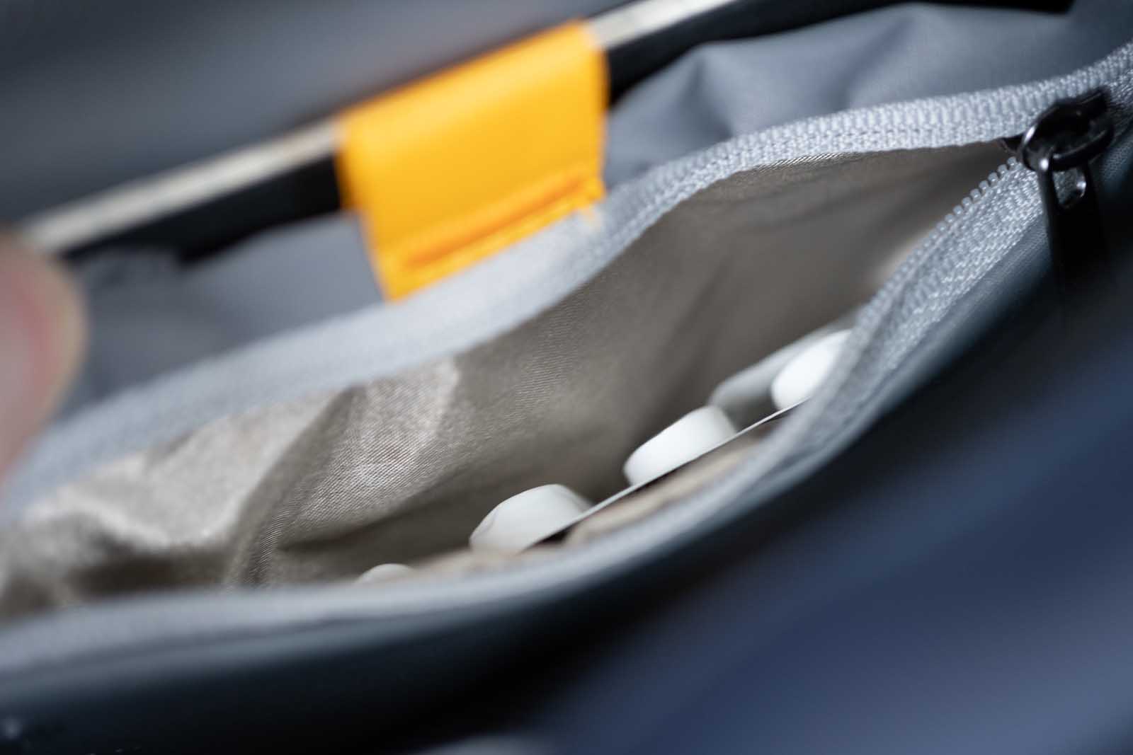 Der Reißverschluss ist wasserabgedichtet, läuft dabei aber erstaunlich leicht – ein klarer Pluspunkt im Alltag. Natürlich ist das keine Tasche zum Tauchen, aber Regen, Schnee oder Spritzwasser bringen sie nicht aus der Ruhe.