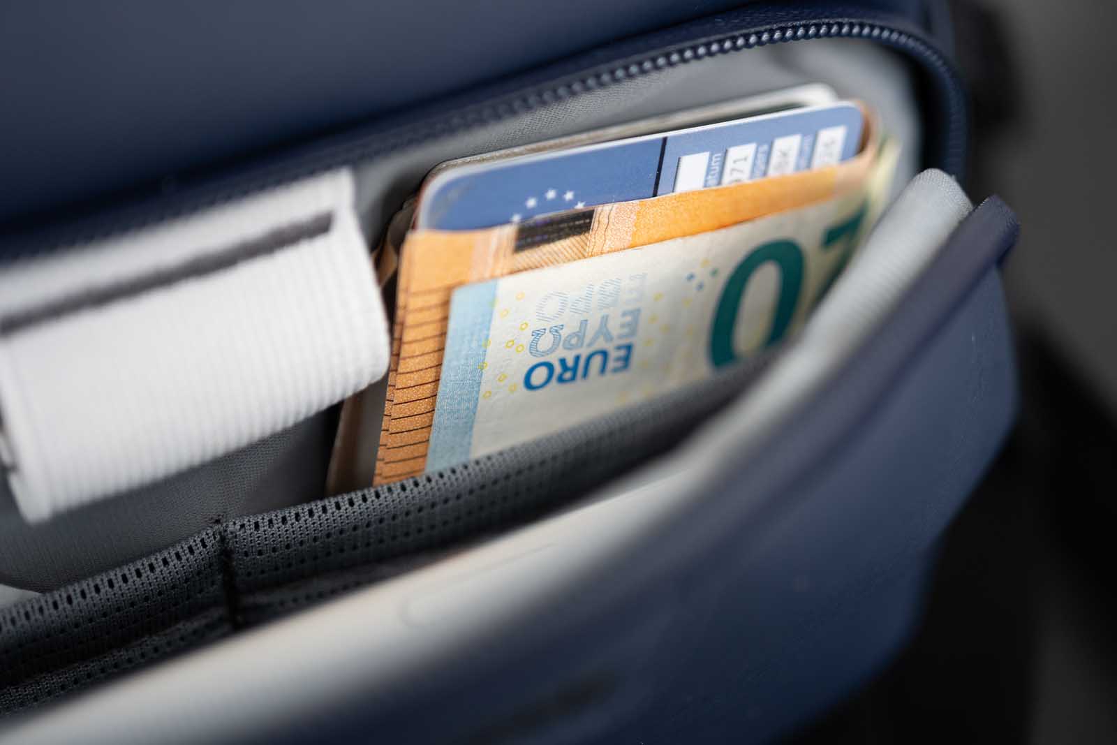 ein RFID-geschütztes Fach für Karten oder Bargeld